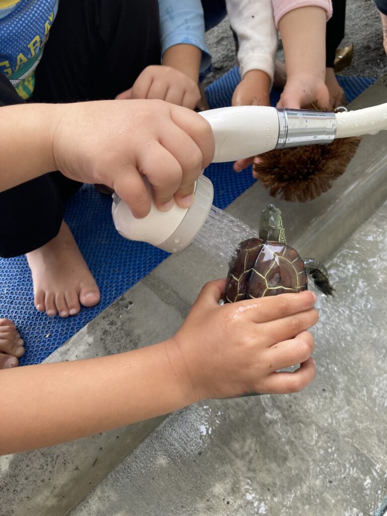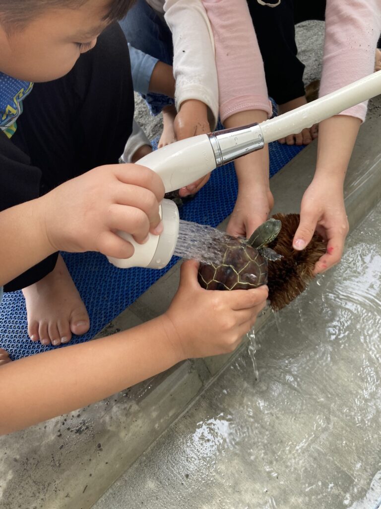 餌をあげたり、体を洗ってあげたりお世話を頑張ってる子ども達です♪
